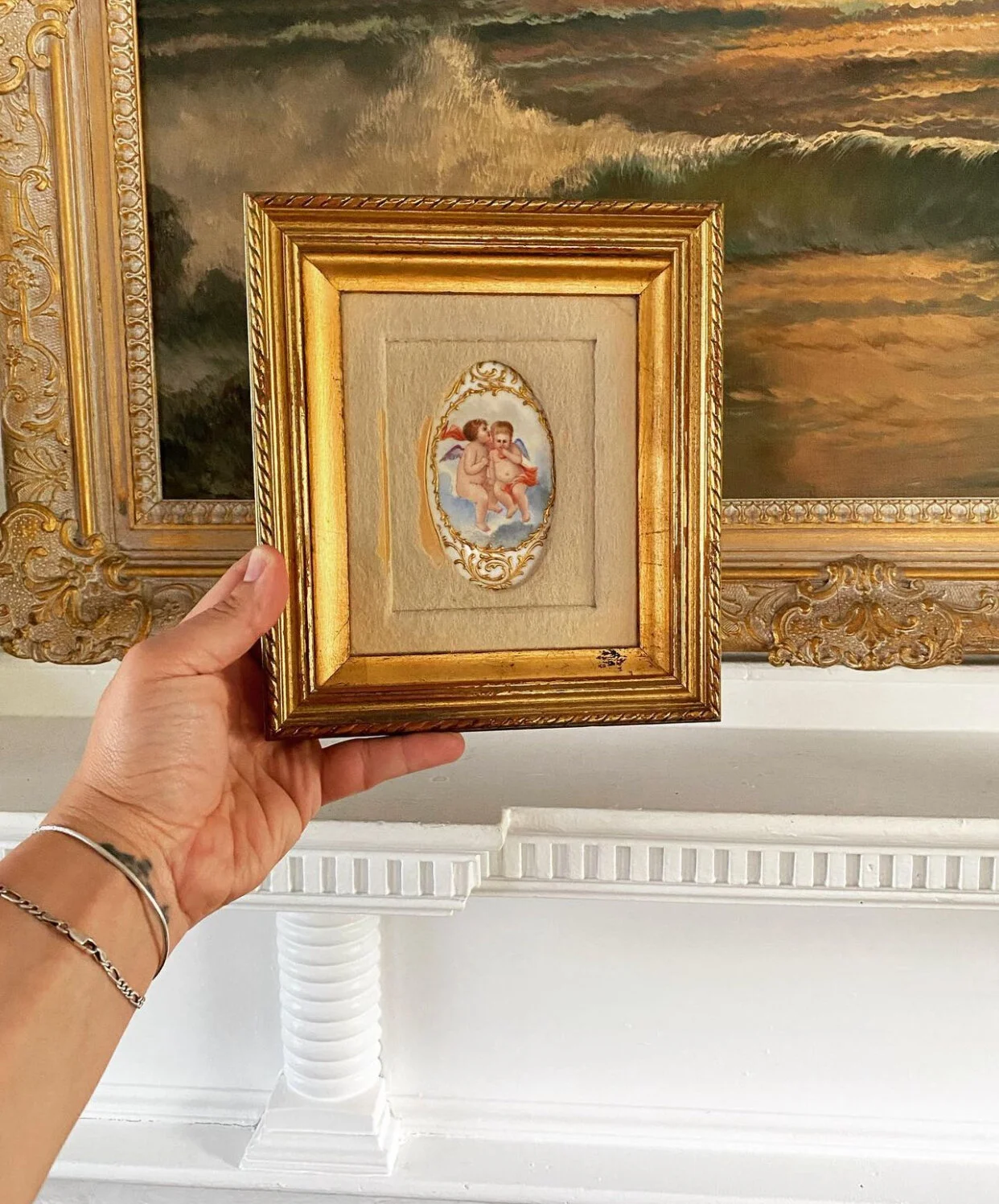Image 1 of 5 Image 2 of 5 Image 3 of 5 Image 4 of 5 Image 5 of 5 vintage painted porcelain cherubs, framed Sale Price: $30.00 Original Price: $45.00 unique mohair or felt-like mattinggreat detailwear as shown, part of the charm!approx: 7.5" × 8.5" Add To Cart Added! unique mohair or felt-like mattinggreat detailwear as shown, part of the charm!approx: 7.5" × 8.5"