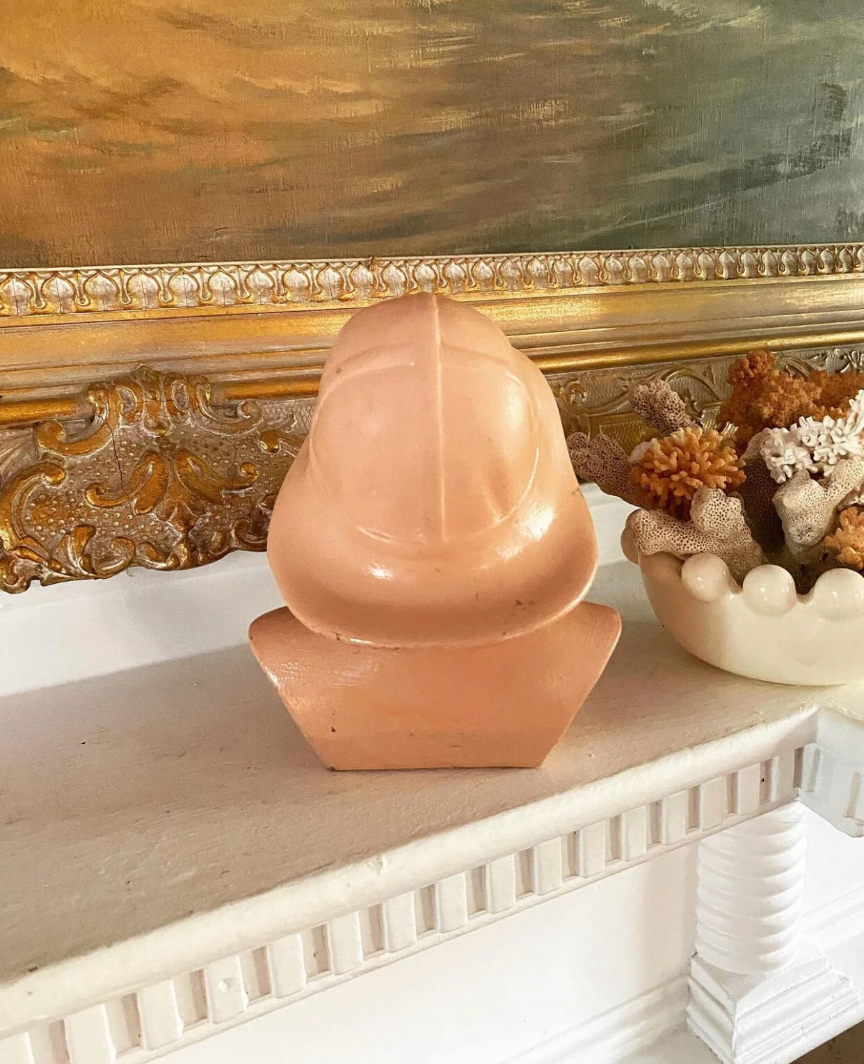 vintage painted holland mold fisherman bust in a nice dusty rose, found like this! color is most similar in person to the photo where i'm holding him. Love him this way! some vintage wear but no cracks or major chips.