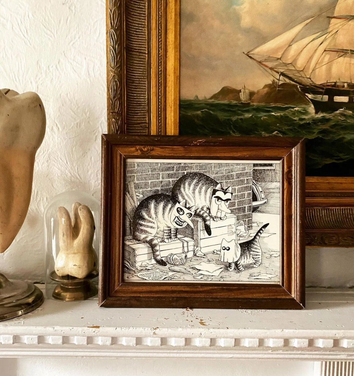 Image 1 of 4 Image 2 of 4 Image 3 of 4 Image 4 of 4 "cats in disguise" comic print Sale Price: $13.00 Original Price: $28.00 sold out retro framed comic print of mischevous cats approx: 10.5" x 12.5" Sold Out Added! retro framed comic print of mischevous cats approx: 10.5" x 12.5"