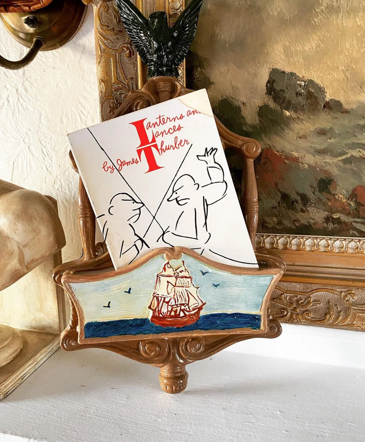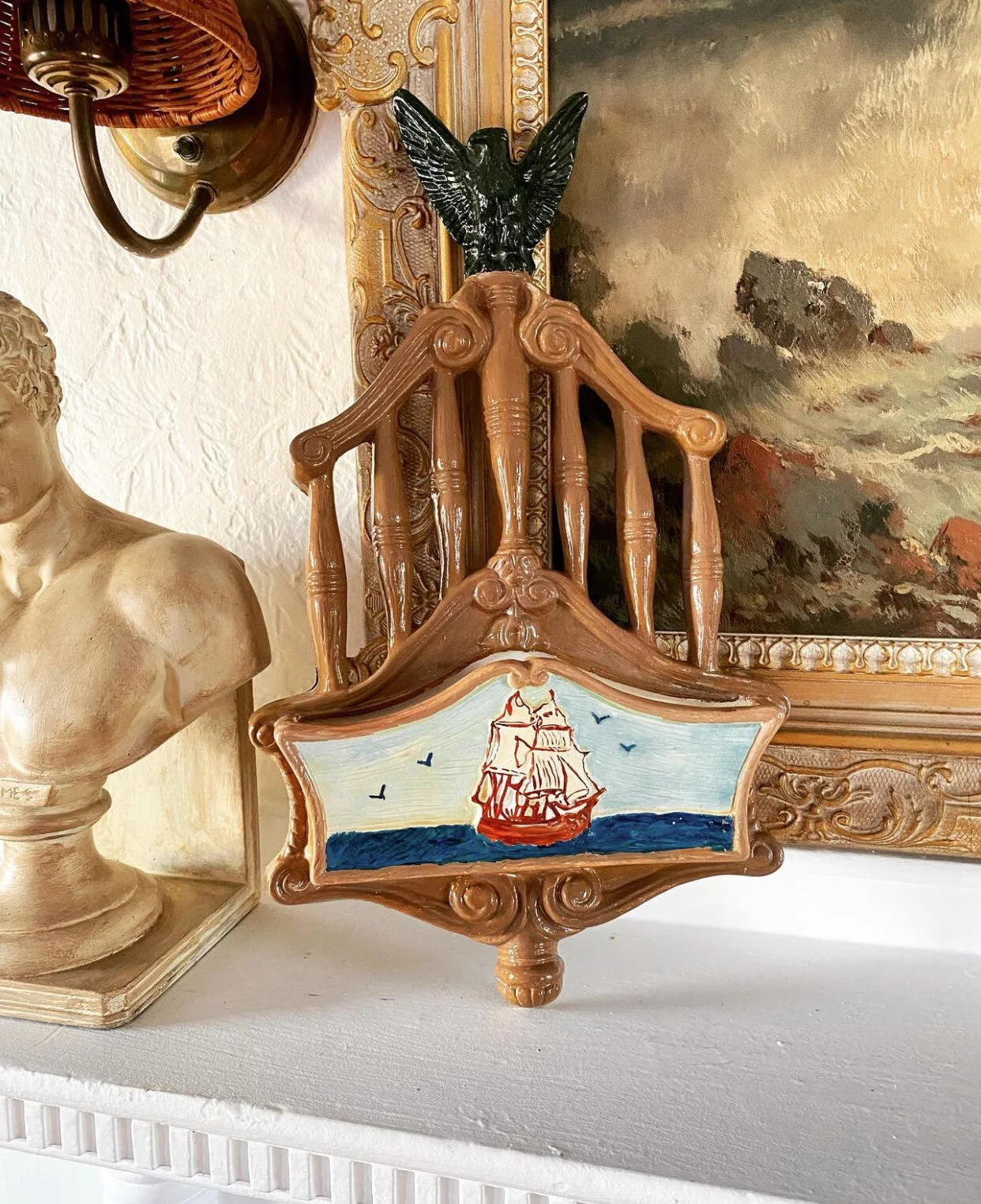 a beautiful unique piece!….vintage. can hold a book next to your bed or some mail perhaps! great condition with just a few small surface chips mostly around the edges, nothing very noticeable & no cracks.
