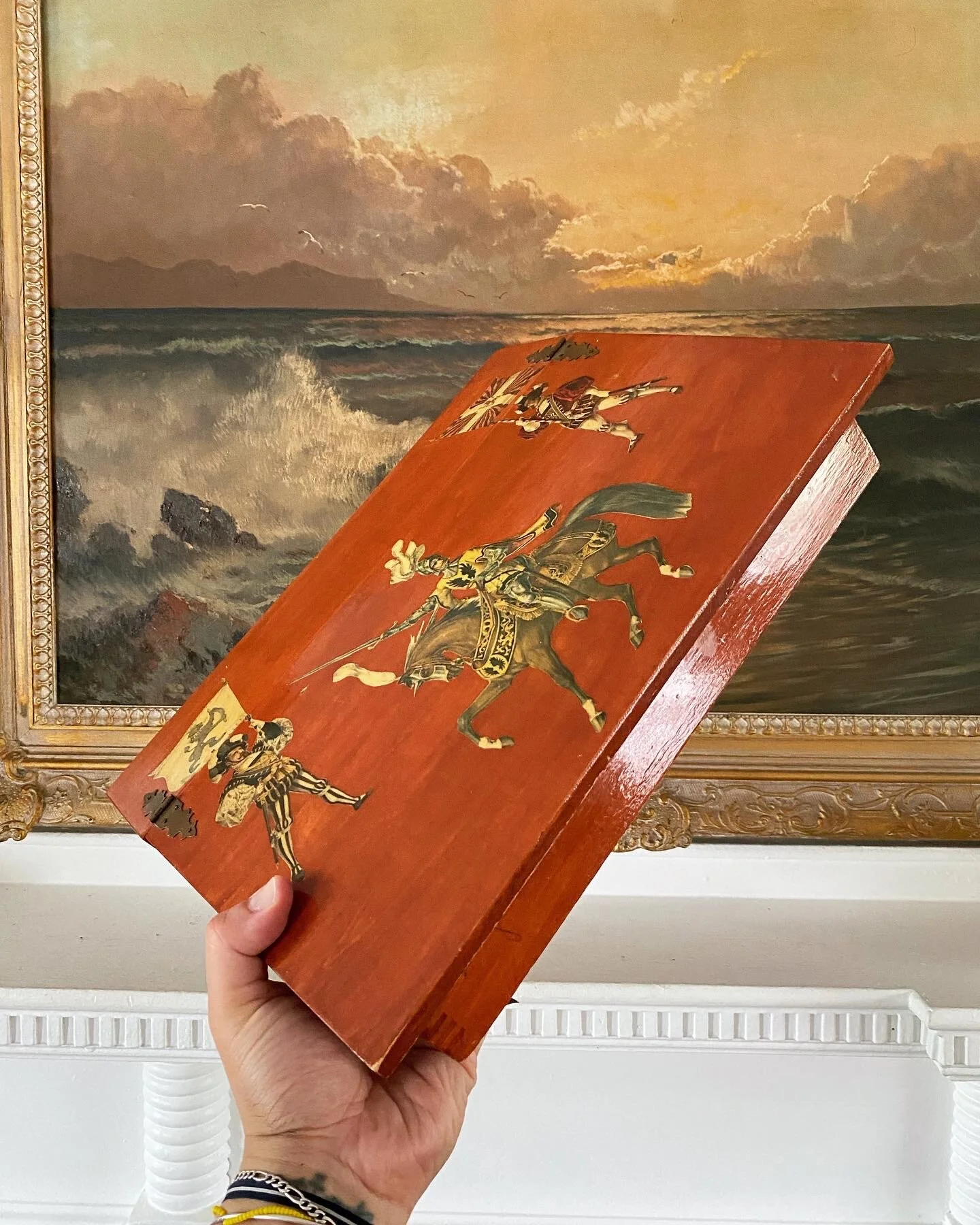 vintage 1972 homemade decoupage cherry wood desk caddy
